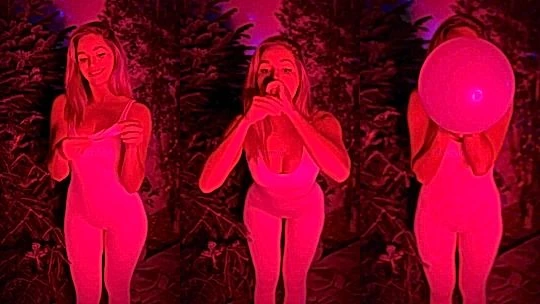Melanie Pavola teasing her naked big tits by the christmas tree