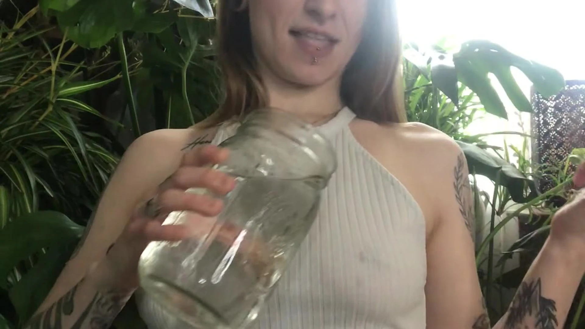 THUMBALINA pouring water on her nipples