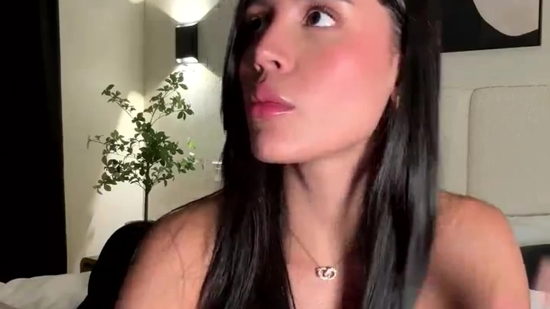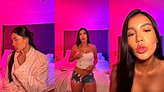 sexy Latina babe Hanna Miller teasing her hot body in bed video leaked