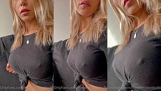 Melanie Pavola teasing her big tits with pink nipple pasties