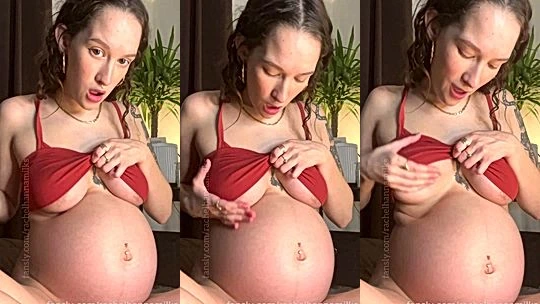 Rachel Hanna fucking a big dildo while pregnant