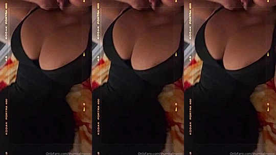 THUMBALINA teasing her big tits in black dress