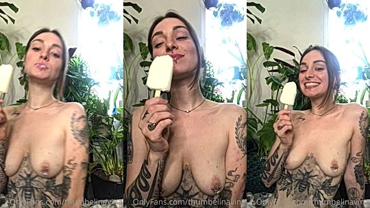 THUMBALINA seductively eating an ice-cream naked