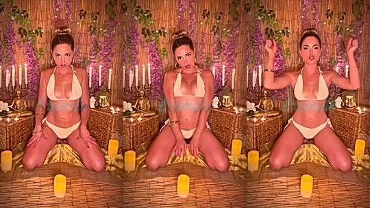 Rachel Hanna teasing her big ass and pussy in blue see-through panties