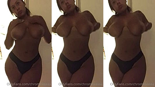 Chromazz teasing her big natural tits in her black panties
