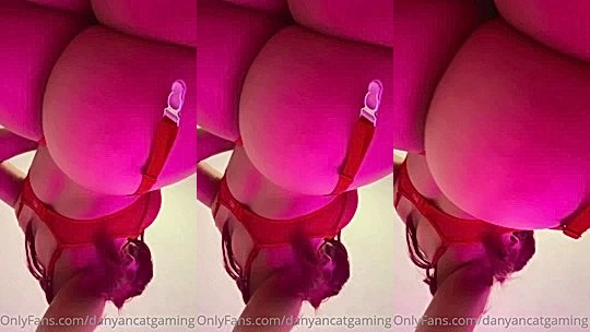 DanyanCat teasing her big ass in red lingerie