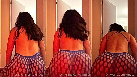 KingCarle teasing her big booty wearing blue mesh pantyhose